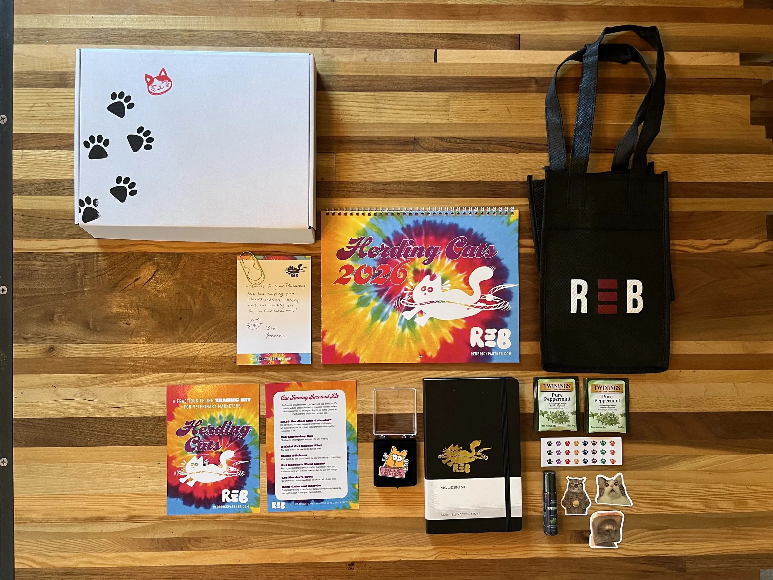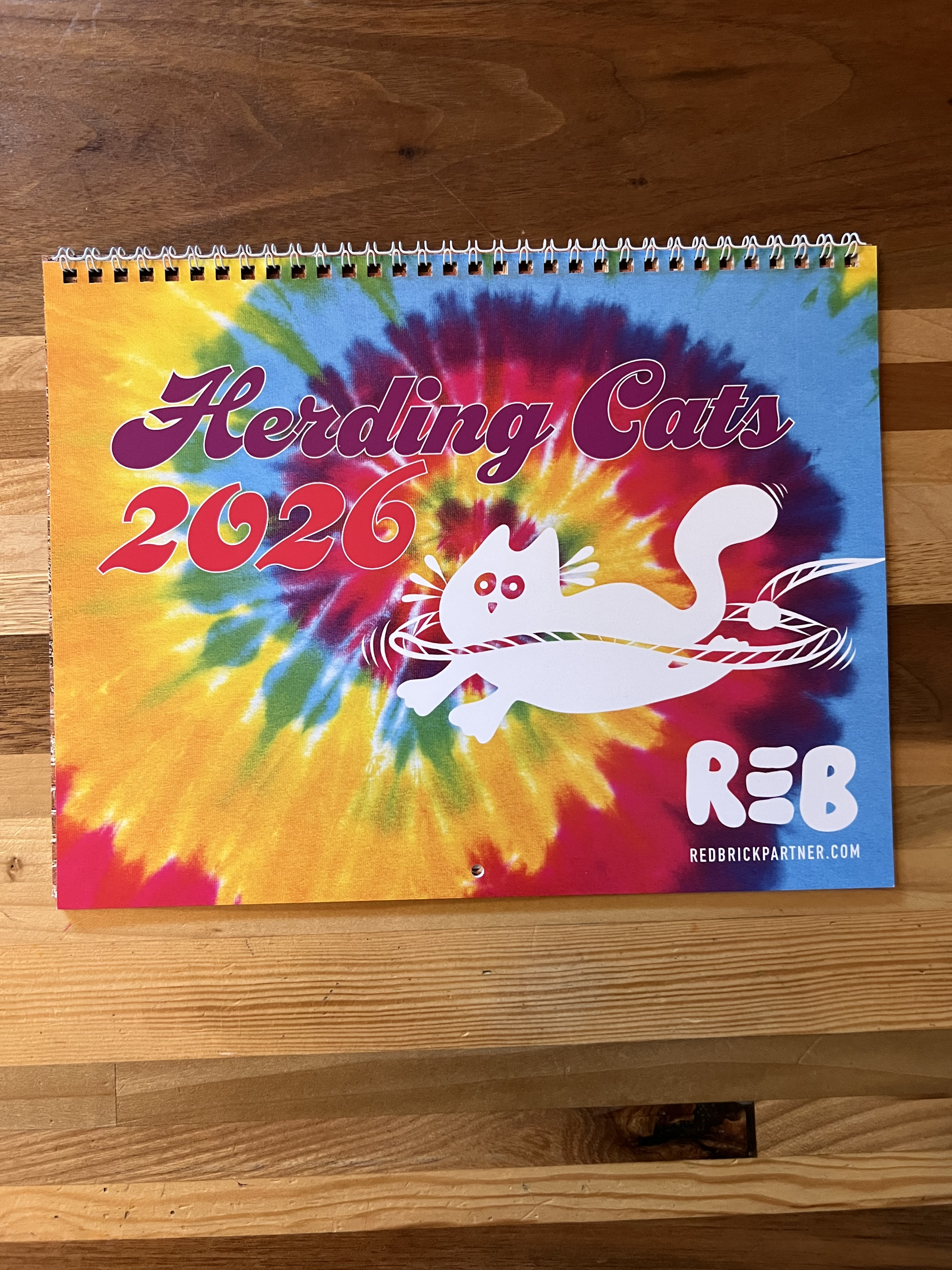 Red Brick Partners was awarded a Bronze VETTY in the category Illustration for the illustrated items in our "Herding Cats" direct mail box which included: a 12-month calendar, a cat pin, a notebook, and an explainer note card.